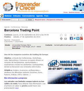 Barcelona Trading Point quiere ser un punto de encuentro para traders, inversores, profesionales y amateurs de diferentes sectores (Acciones, Forex, Futuros, Indices, CFD’s, Valores…) en el que puedas compartir conocimientos económico-financieros. A través de Conferencias, Workshops, Labs, Networking y Concursos queremos ofrecer un conjunto de herramientas, oportunidades y experiencias a todos los asistentes y participantes, donde la interacción sea constante entre todos.