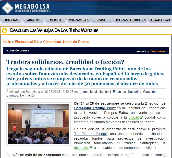 Barcelona Trading Point quiere ser un punto de encuentro para traders, inversores, profesionales y amateurs de diferentes sectores (Acciones, Forex, Futuros, Indices, CFD’s, Valores…) en el que puedas compartir conocimientos económico-financieros. A través de Conferencias, Workshops, Labs, Networking y Concursos queremos ofrecer un conjunto de herramientas, oportunidades y experiencias a todos los asistentes y participantes, donde la interacción sea constante entre todos.